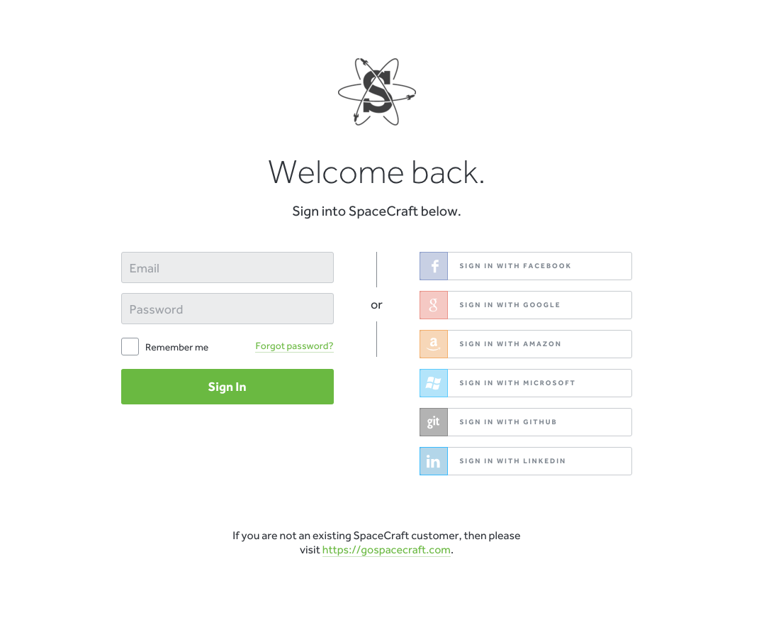 To make logging into your SpaceCraft account easier we have allowed the ability to sign in with third-party companies and social media such as LinkedIn.